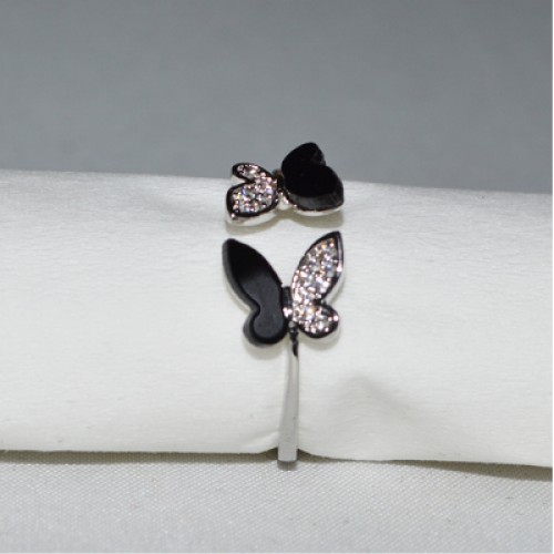 خاتم على شكل فراشة،باللون الفضي والاسود