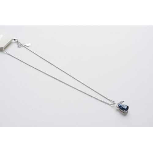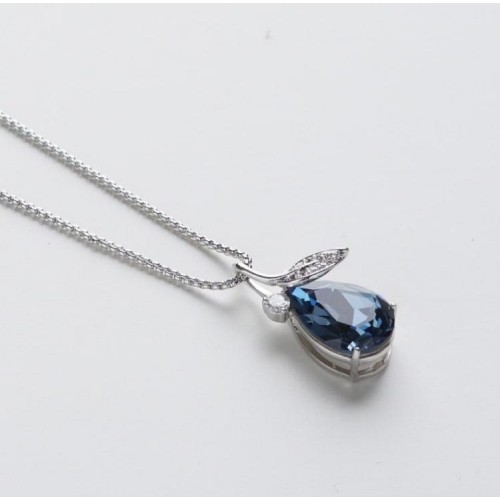 قلادة بفص كرستال ازرق على شكل قطرة. السلسة الرائعة مشبعه بالرومانسية الخالدة. تتألق من البلورات الواضحة مع الحجر الأزرق المركزي النابض بالحياة في هذا التصميم المطلي الروديوم . أنيقة بشكل رائع ، إنها هدية ستُعتز بها إلى الأبد