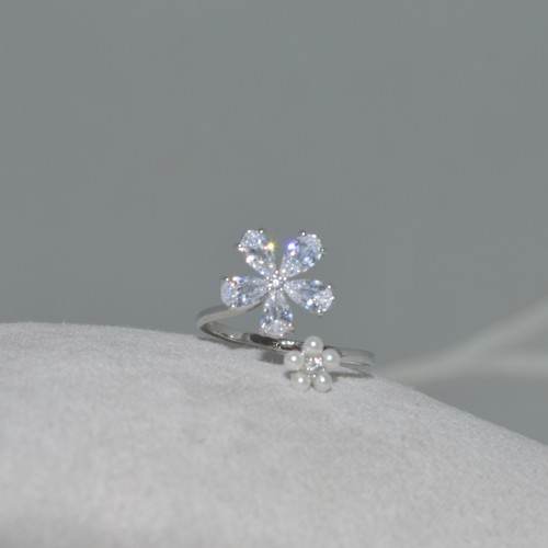 خاتم على شكل وردة من مجموعة النباتات، أبيض اللون، مطلي باللون الففضي
